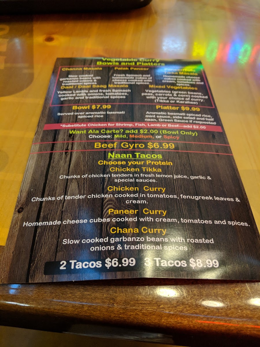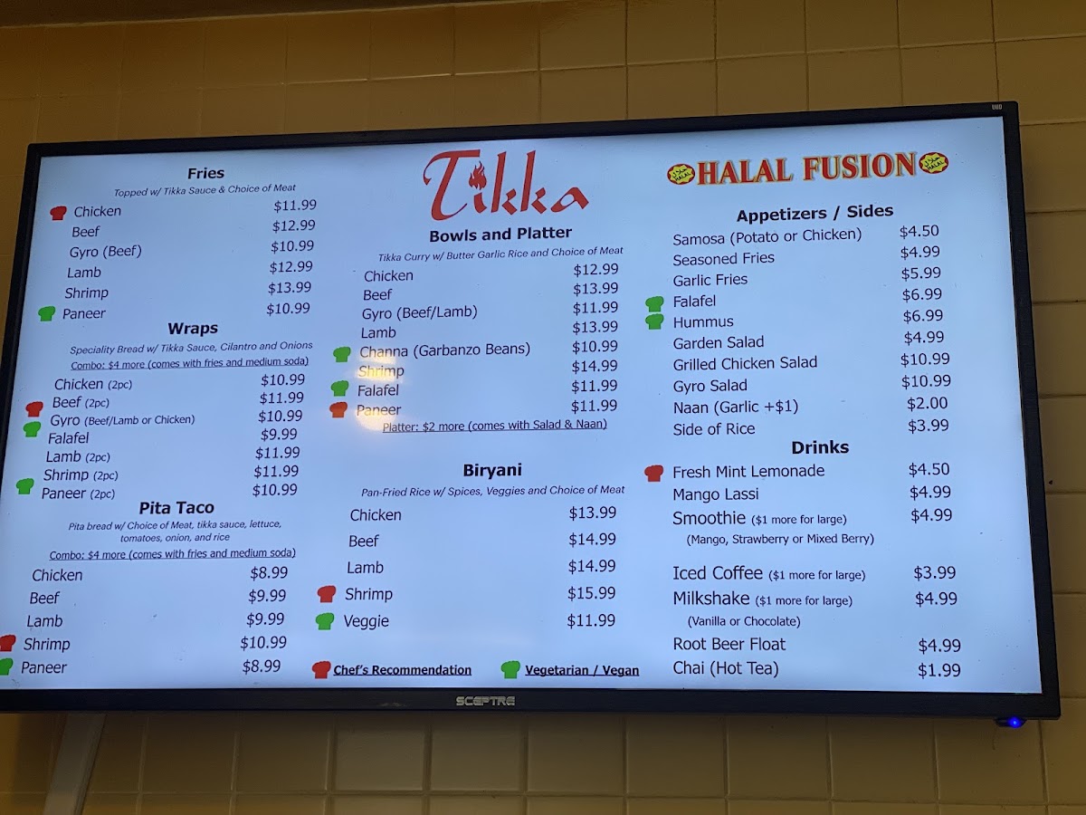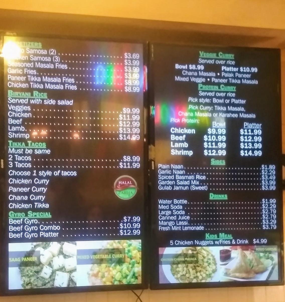 Their Tikka Bowls are a standout, offering a choice of Chicken, Shrimp, Beef, or Falafel, each packed with rich, aromatic flavors. For those who prefer a lighter option, the Grilled Chicken Salad and Garden Salad Mix make for refreshing sides, while the Side of Rice or Plain Naan complement any dish beautifully. The Extra Beef adds a nice protein boost for those who need a little more. If you're in the mood for something more substantial, the Gyro Specials provide three fantastic options: Beef Gyro, Beef Gyro Combo, and the Beef Gyro Platter, all offering savory, tender beef served in different styles.